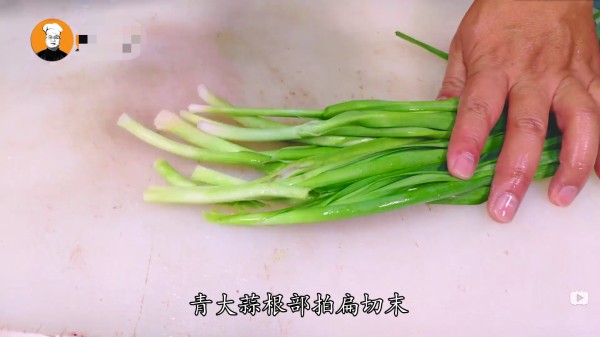 5、然后再把生姜切片,大葱切小段,青大蒜根部拍扁切末,再把洗干净的白萝卜不要去皮直接切滚刀块