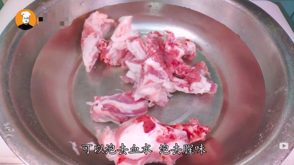4、先把羊排一根根肋排割下来,再斩成五厘米的小段,然后把切好的羊排放入凉水中泡一个小时,可以泡去血水去除腥味,烧出来的汤羹清澈