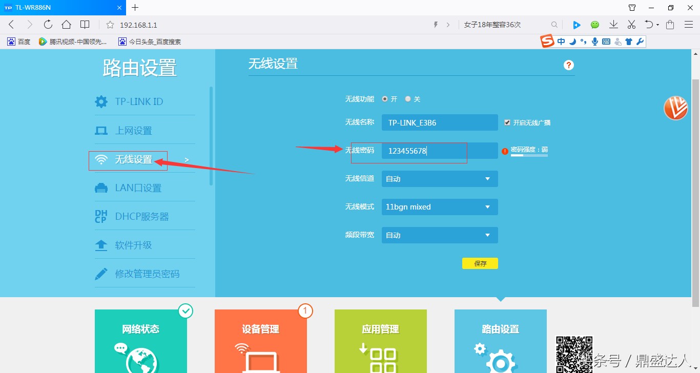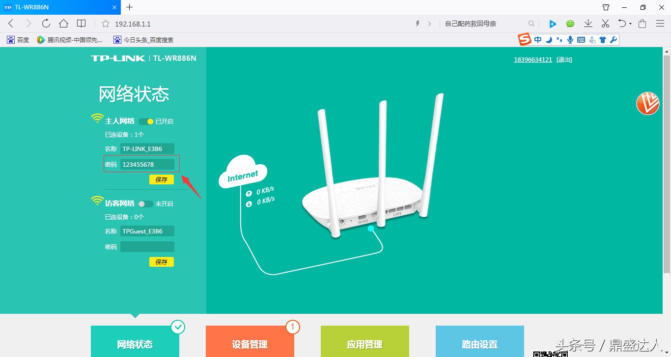 我这款路由器进入管理界面后直接就能看到密码。箭头标注处就是。
