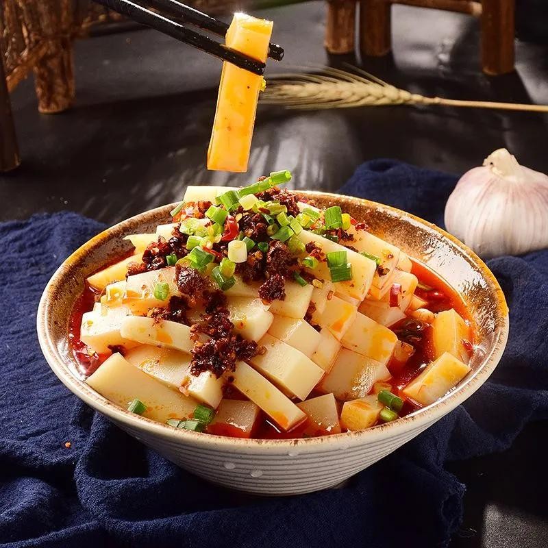 米豆腐夏天冷着吃,拌上调料,加上不同味道的辣椒,口感Q弹嫩滑,是夏季消暑的优良菜品,可做小吃,也可以做配菜,光是想想就口齿生津,让人胃口大开。贵州米豆腐陪伴了无数人的成长,见证着一代又一代贵州人的成长,多年来,它已经成了贵州人生活中的一部分。