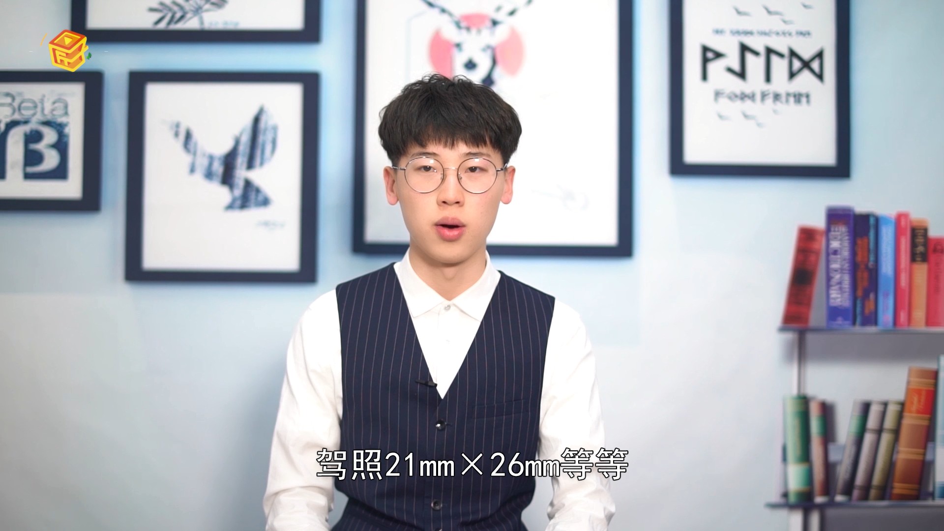 其中身份证、体检表等多采用小一寸22×32mm,第二代身份证26mm×32mm,普通一寸相则25mm×35mm。护照旅行证件的相片标准相片尺寸:48mm×33mm,头部宽度为21mm~24mm,头部长度为28mm~33mm)。有很多证件的照片尺寸大小不一:港澳通行证33mm×48mm、赴美签证50mm×50mm、日本签证45mm×45mm、大二寸35mm×45mm、护照33mm×48mm、毕业生照33mm×48mm 身份证22mm×32mm、驾照21mm×26mm等等。