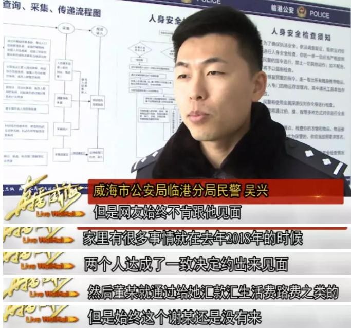一直到2018年年底,董某也没能见到这位在网上谈了三年的女朋友。 突然有一天,谢某说家里有老人生了一场大病,急需手续治疗,需要一大笔医疗费。既然是情侣,董某没有太多的犹豫,就将钱汇了过去。