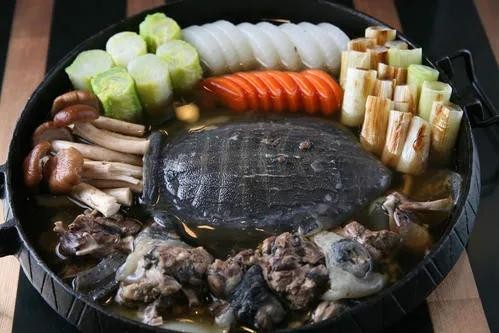 是将甲鱼放入瓦锅中,并且加入汤。让甲鱼慢慢的喝汤,慢慢的烹煮。甲鱼口渴以后会食用汤,当汤喝完的时候甲鱼也熟了。