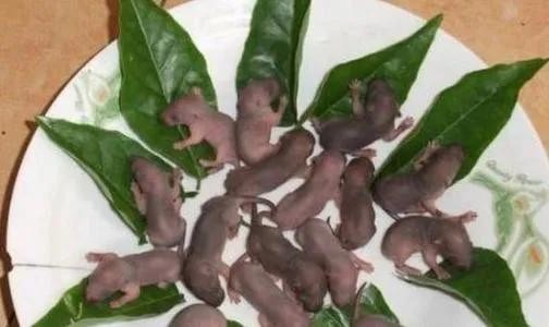 将刚出生的老鼠放入锅中,当第一声的时候加入调料,第二声的时候继续加入相对应的调料,当第三声的时候就可以食用了。