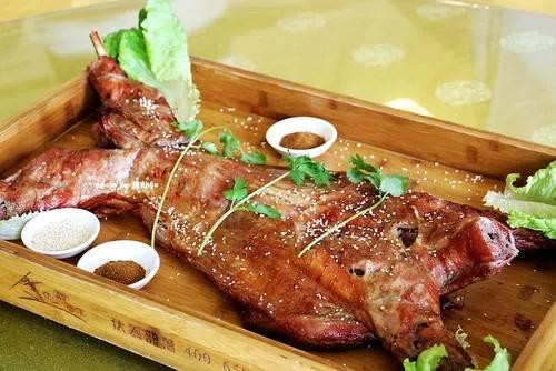 将要快要临盆的母羊放入烤炉中,当母羊全部烤熟以后将小羊取出,成为烤乳羊。