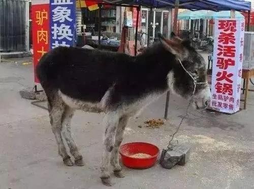 这道菜需要用活生生的驴,旁边有煮沸的汤。客户想要吃哪一部分,直接用汤浇下去,并直接割下来,直接食用。