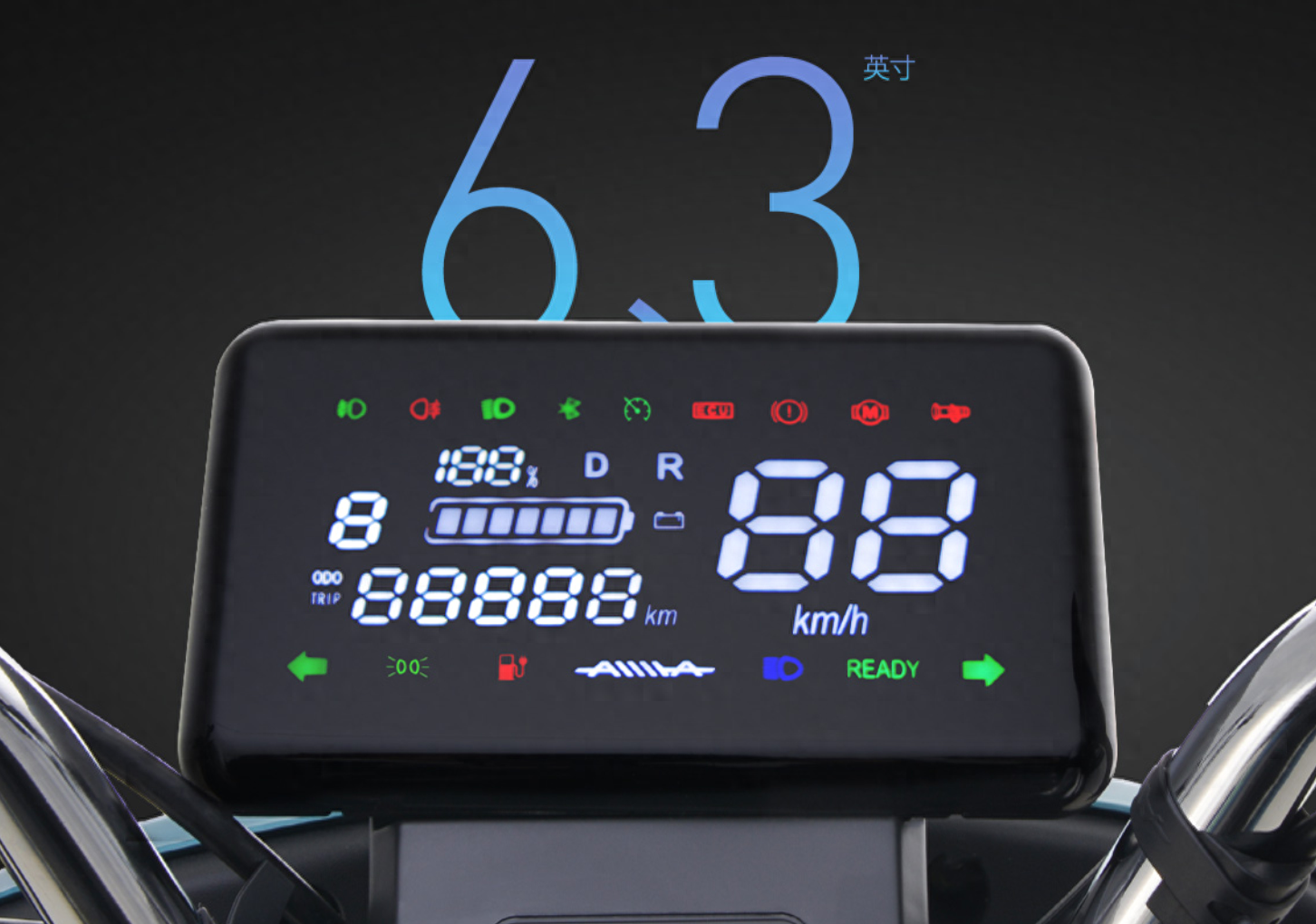 在细节设计方面,爱玛N370拥有6.3英寸高清大屏仪表,清晰度可以媲美智能手机,清晰显示车速、电量指示灯等信息,还有一些人性化的设计,例如超大座桶、报警提示音、不勒手后把手,醒目的后尾灯等这些配置也算是“小亮点”。