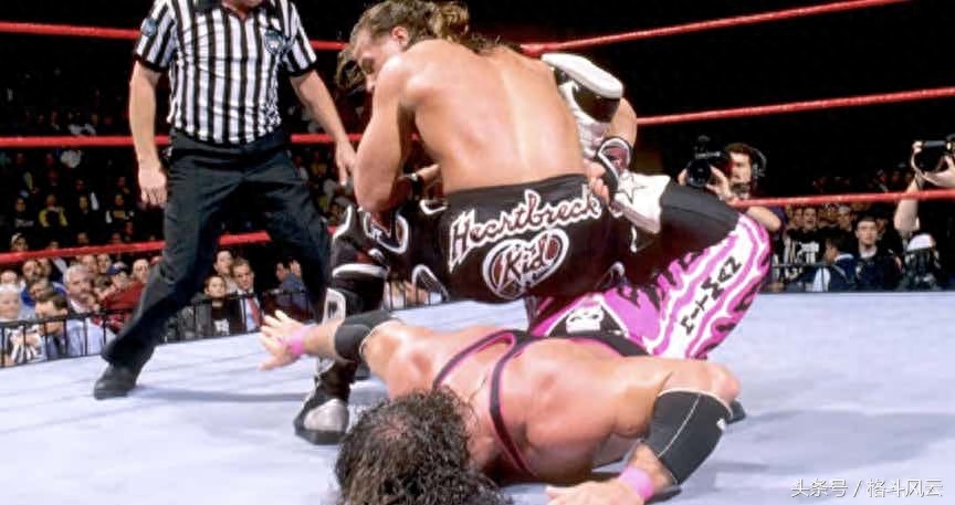 这是WWE老板制造的乌龙真实事件。WWE老板知道布雷特哈特要离开,随后安排了肖恩迈克尔斯对阵,在锁技锁好了之后,裁判还没有数秒,就直接敲铃,因为WWE老板担心哈特会把冠军腰带带走,当时哈特真的差点把老板给打了,一个口水就喷了出去