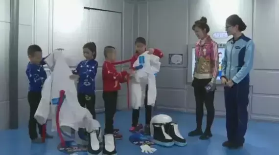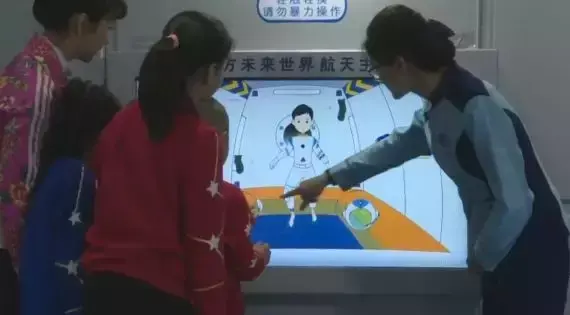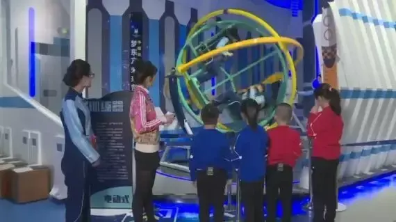 阳光姐姐和大家一起观看使用中的模拟航天器
