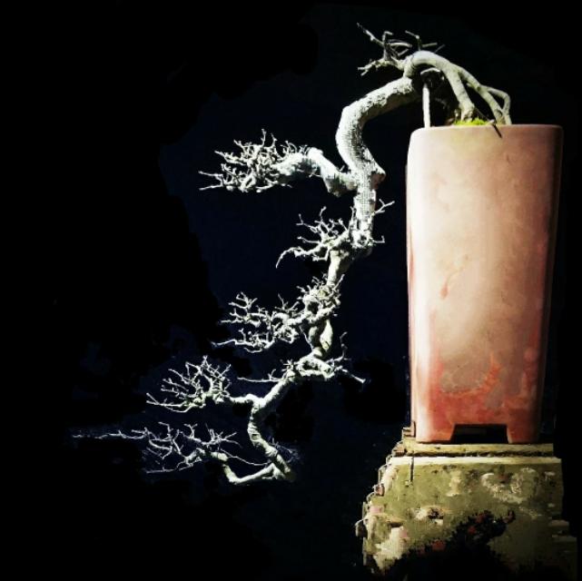 一、盆景造型的艺术思维。狭义上讲,对盆景的思维,是我们通过对自然景象的观察、感受,所形成的感性上的认识,并将这种认识提升到理性的层面上。盆景造型艺术思维是在长期的观察、学习中积累,并在盆景造型中反复实践获得提升,是盆景造型艺术灵感的源泉,决定着盆景造型的成败。例如对丛林盆景的造型,如果你没置身于山野,闻不到山林的气息,观察不到山林的自然型态,感悟不到山林静谧、幽深的意境,就无法获得对丛林造型上认识和艺术灵感,不能将那些自然美态通过你的作品表达出来,亦不能将哪些约定俗成的丛林制作规则合理、准确的加以应用。往往这种表现存在于一些初玩盆的新手之中,因缺乏对自然型态感知上的认识或偏重于技巧的掌握,以至于在盆景造型中无可适从。