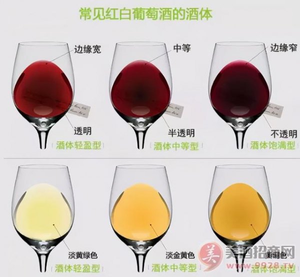 颜色深的葡萄酒一般酒体较为厚重,风格也较为强劲,当然单宁含量也稍高。