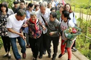 身着仪仗队礼服的护送人员在高铁站夹道欢迎;拉起的横幅上写着:“欢迎刘慈珍奶奶回到阔别73年的家乡内容”;人群簇拥着她回到刘家老宅,又找到祖坟;早年失散的侄女摸着她的脸说,“好像看到了妈妈”……