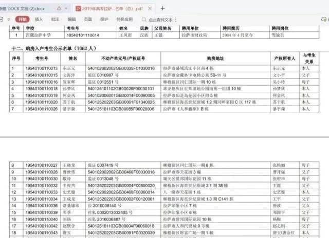 加分名单623人,以及西藏拉萨购房落户高考的考生名单1062人。