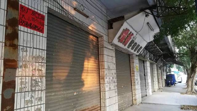 不过,疫情还是给东莞留下了深深的伤痕,就在东莞溪中路鑫浩源工业园的一路之隔,一整排的商铺大门紧闭,商标被拆掉,路上没有行人,只有空荡荡的马路,显得十分萧条。