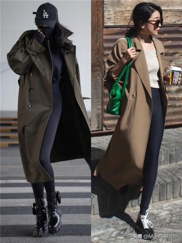 比如:长款风衣、长款大衣都适合搭配打底裤,穿起来保暖还显瘦,微胖的你都不必担心啦~