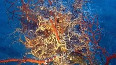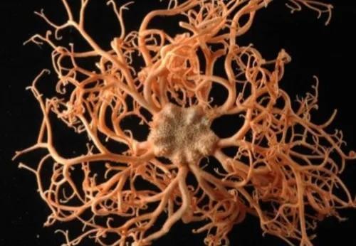 这是一种极其罕见的海洋怪物,它们以海底淤泥中的有机物碎屑为食,凭借其复杂精细的臂状物去捕捉磷虾等浮游动物,它就是筐蛇尾,筐蛇尾也叫蓝海星,但他们不属于海星类,和海星一毛钱关系没有,它们属于棘皮动物群,被称为易碎的星体,长期栖息在1200米的深海底,看他们蠕动的身躯,像不像一群蛇围在一起,是不是非常惊人,其实他们真正惊人的地方,是他们的再生能力,他们不但身体能在生,就连每条腕的每一条也能分成2条小腕,而这些小腕又再分成许许多多更小的腕足,他们的体重虽然只有5公斤左右,但他们可以凭借复杂精细的壁状物去捕捉鳞虾等浮游生物,他们有时也吃海底淤泥中的有机物碎屑,筐蛇尾喜欢在夜间活动,白天他们就像一团蛇发女妖的死珊瑚一样,可到了晚上他们会慢慢的舒展开来,就像一个倒扣着的篮子样的东西,伸展着许许多多的小腕足,当他们捕捉猎物的时候,就像渔民撒开了大网一样,看上去就像蜘蛛精一样撒开大网有点怪异,也有点与众不同,像这样拥有着怪物的外表也有着顽强的再生能力,同时也会利用自身的优势去捕捉猎物的筐蛇尾,不知道如果你见到他第一反应会是什么呢?你敢吃这种生物吗?