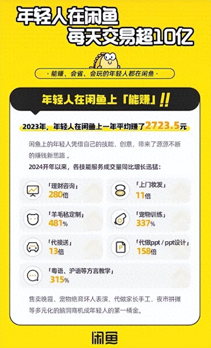 让我们看看数字背后的趋势,闲鱼日均交易额已突破10亿,这不仅是一个数字,更是消费者日益增长的信任与依赖的体现。每天有超过400万件闲置物品在闲鱼上发布,而过去一年已经有超过1亿人选择在这里挂出自己的闲置宝贝,这些数据不仅仅是数字,更是用户对闲鱼平台的广泛认可和信赖。