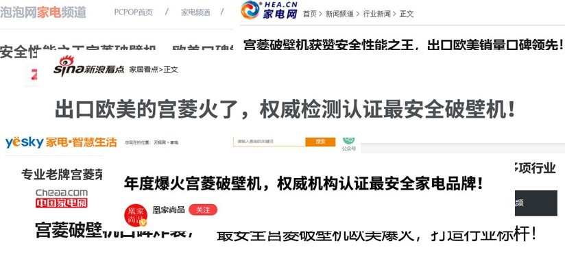 宫菱被媒体誉为:“破壁机中最佳安心品牌”,与格力、美的等高端系列家电齐名!多年来常出口欧美,罕见得到欧盟等多国认证,荣获CCTV央视展播推荐,在家电行业这几年窜火!因为国内抢不到,居然还有不少黄牛从海外代购。下面为它家取得的评价图之一: