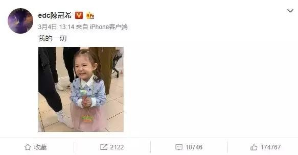 翻看如今陈冠希的个人动态,基本上十条里面有八条都是晒女儿和老婆的动态。