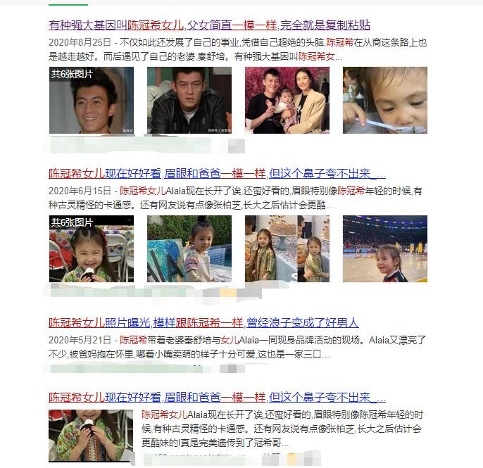 Alaia的妈妈秦舒培作为一个国际名模,整个人的五官都比较立体有棱角,而女儿Alaia不管是眼镜还是脸型和嘴巴,小的时候都像极了陈冠希。