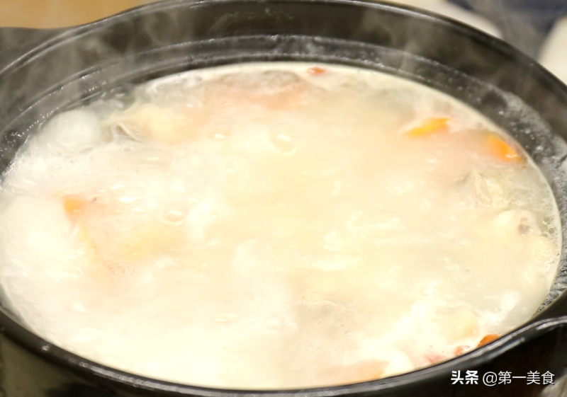 这锅汤如果是饭店作为高汤使用的话,那肯定是不加任何配菜,基本也不加调味,而作为菜来说,就是最后的时候根据口味加入配料和调料。