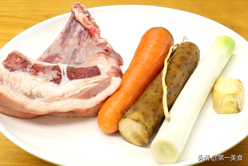 准备适量的葱姜、山药 、胡萝卜和2斤羊排。
