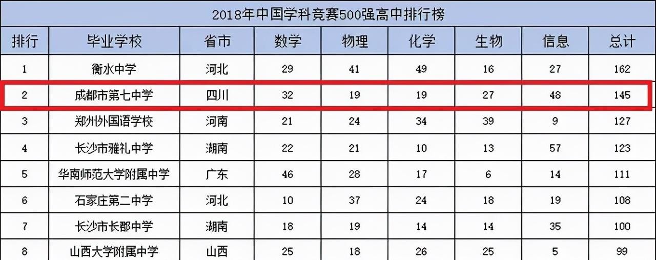 这所高中有多厉害呢?在2018年中国学科竞赛500强高中排行榜中,成都七中排名第二。