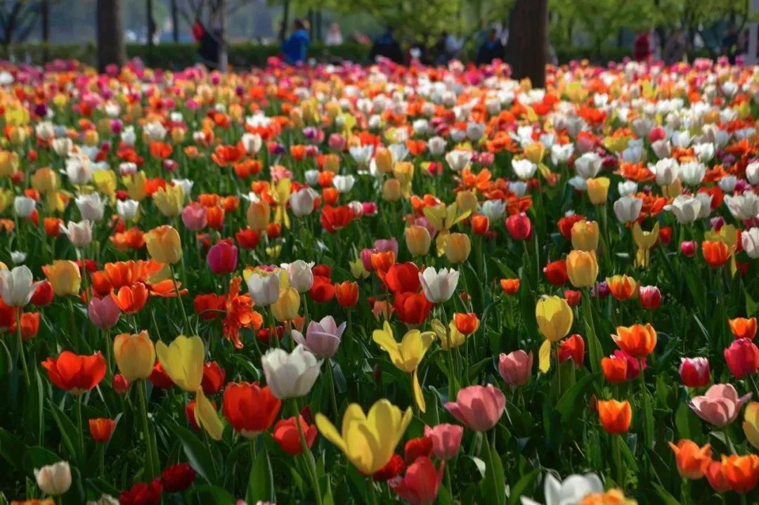 整修后的大宁公园于去年下半年重新开放,眼下有50万株郁金香,汇成了超1万㎡的花海,归来即巅峰。