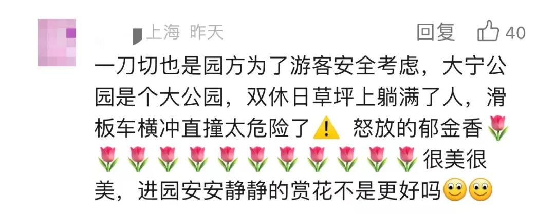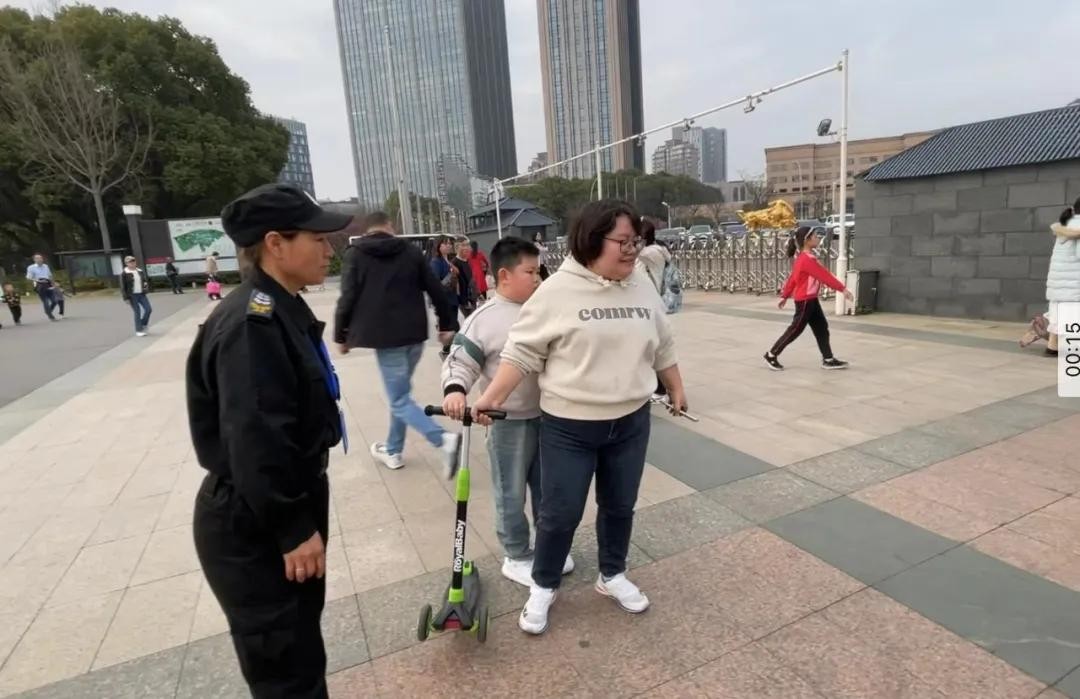 以淮海中路的襄阳公园为例,园方负责人马啸远告诉记者,公园不允许携带宠物、搭帐篷等行为,但儿童滑板车可以入园,“人流量大的时候,我们会提醒游客,滑的时候要小心,减慢滑速。”