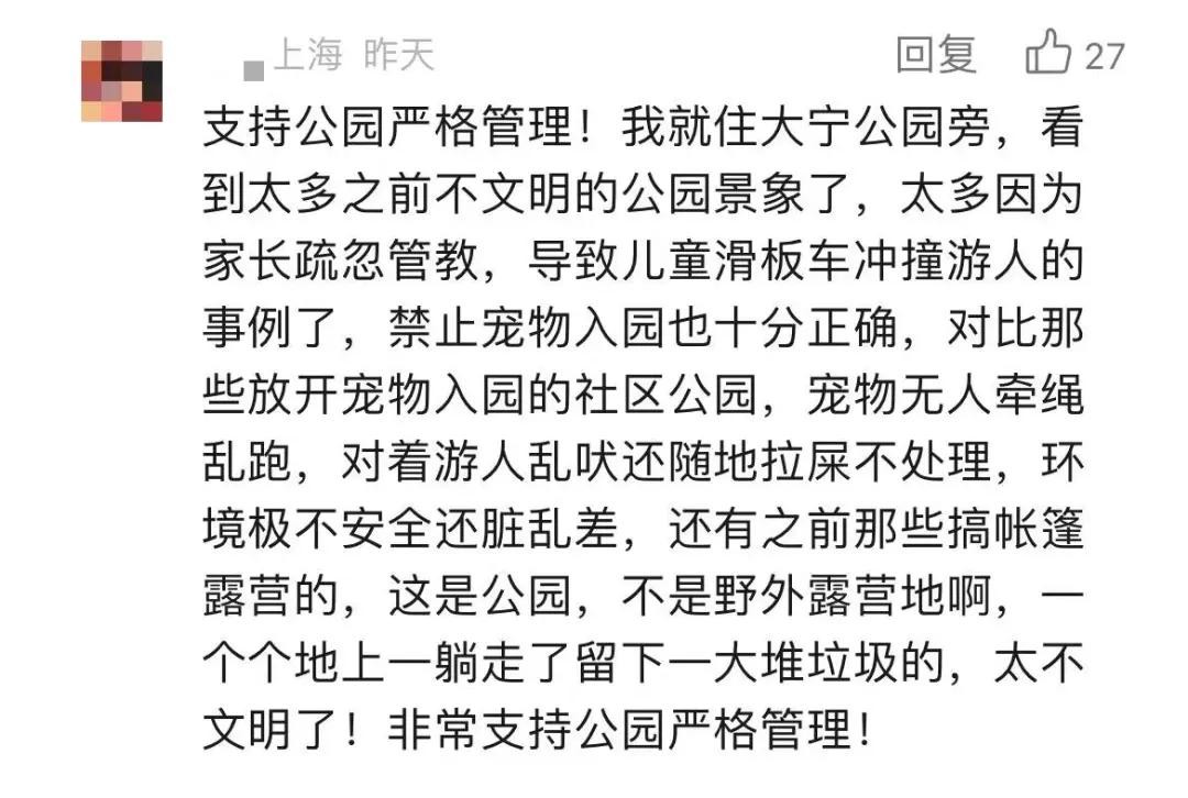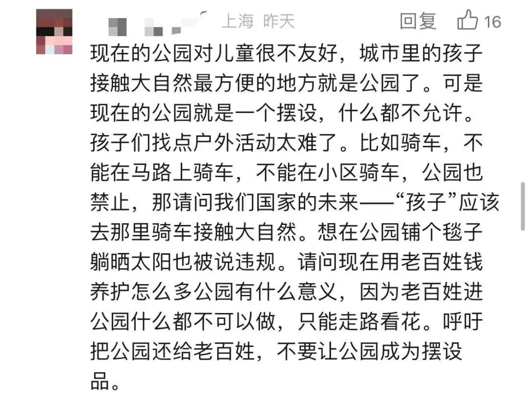 “整修前我带孩子来公园玩,儿童滑板车、自行车都能进,但是现在管理升级了,这些都被禁止入园”