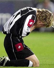 伟大的内德维德,在2002-2003赛季欧洲冠军联赛半决赛淘汰皇马后,内德维德的一次犯规让他领到一张黄牌,捷克人随即跪倒在球场上,痛苦的面容深埋在垂着的金发下,由于此前比赛中他已经得到一张黄牌,累计两张黄牌将使他无缘最后的决赛。夺得欧冠奖杯一直是捷克人职业生涯最大的梦想,但终究没有实现。