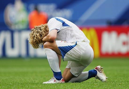 于是,铁人最后一次跪倒在深爱的绿茵场上,为捷克,为这只超越一切浪漫,超越一切情感的球队,他们最终纵情的离开。