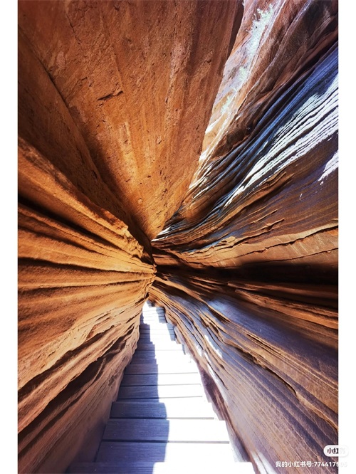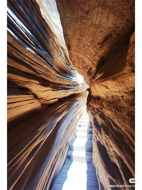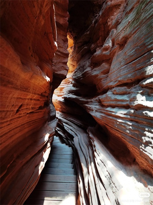 提起波浪谷很少有人了解,但他在摄影爱好者中可是大名鼎鼎,是拍照的圣地。雨岔峡谷像多彩的小家碧玉,那么波浪谷就是雄壮的陕北汉子。在这里你即能感受到广袤无垠寸草不生的红色火星地貌,又能体会到小桥流水绿树成荫的塞外江南。一线天~单人无法直立通过,加上光影、绝壁,让你的镜头美爆你的朋友圈。