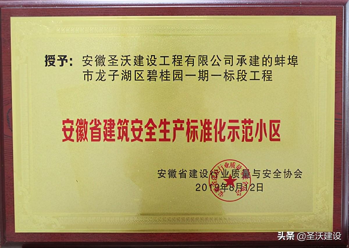 该工程荣获了2025年安徽省建设行业质量与安全协会颁发的“安徽省建筑安全生产标准化示范小区”奖牌