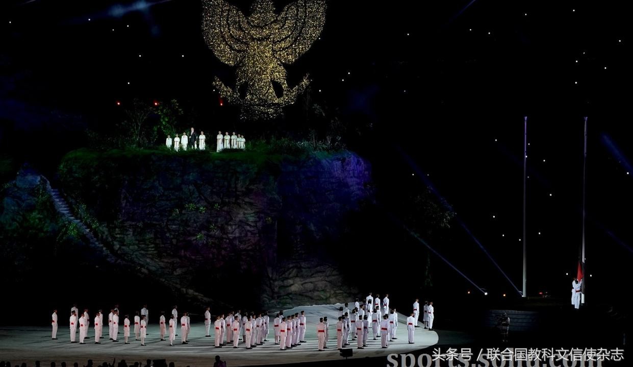 各国运动员入场后,印尼著名歌手维娅带来歌曲《群星闪耀》,欢迎来自亚洲各国的运动员。接下来是升印尼国旗、奏印尼国歌时间,在舞台中央的实景山顶上屹立着国徽上的神鹰。亚奥理事会主席艾哈迈德亲王致辞后,印尼总统佐科宣布“2018年雅加达亚运会开幕”,主体育场被绚丽的烟火包围,场面震撼、恢弘。亚奥理事会会旗入场,在会旗冉冉升起后,篮球运动员维斯鲁代表运动员宣誓。 之后舞者手持篝火组成火炬形状,将亚运圣火请进体育场,印尼著名羽毛球运动员,也是前亚运会冠军王莲香点燃亚运圣火,圣火点燃如同火山喷发,开幕式现场升起绚丽的焰火,火山之上光芒闪烁。最后是精彩的文艺表演(搜狐体育 苏苏)