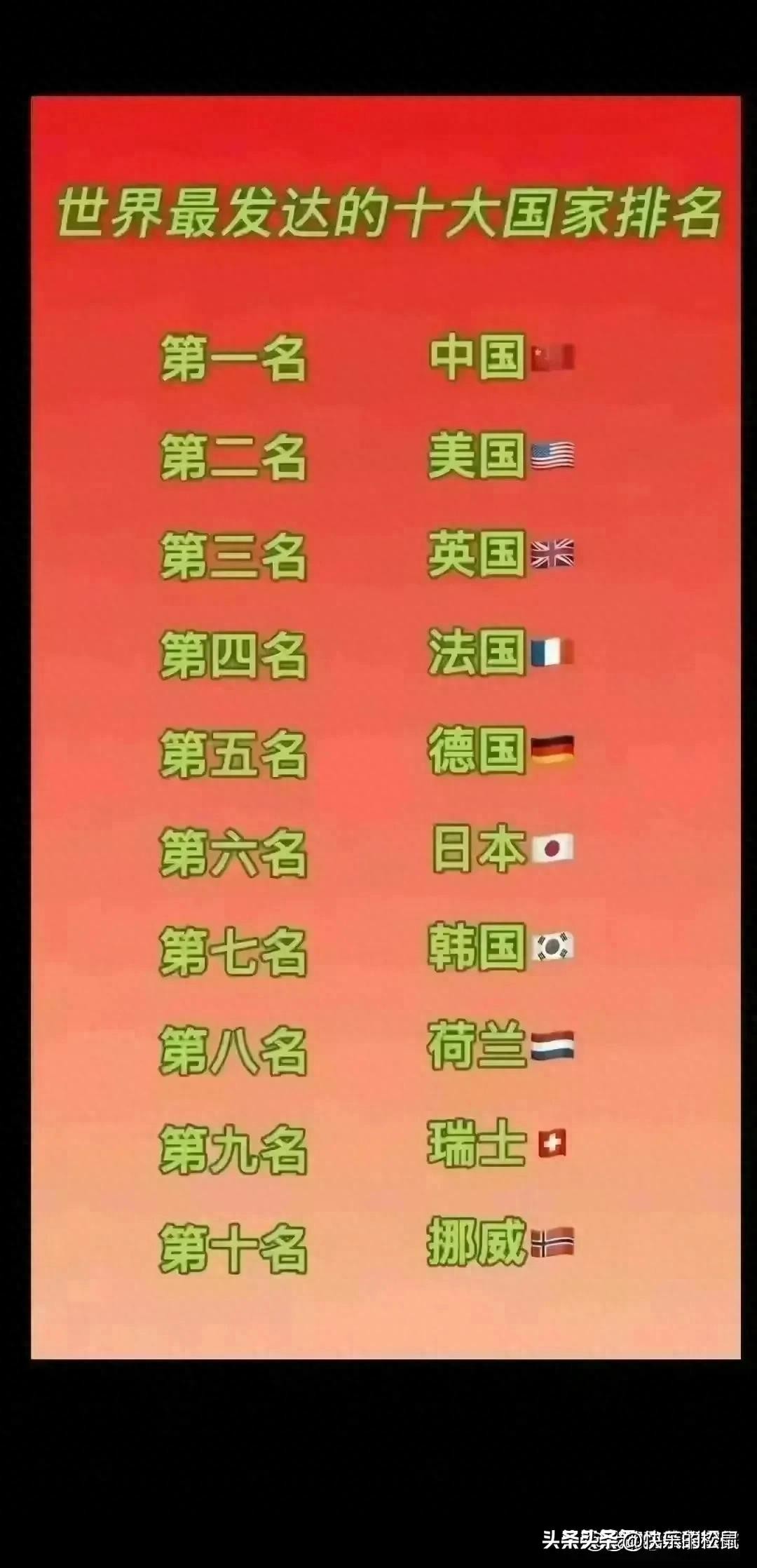 世界最发达的十大国家排名!整理得一清二楚,我国排第一!