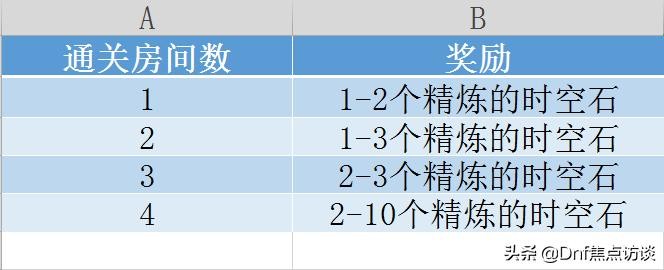 通关时空石房间会增加通关后的精炼的时空石的数量,通关时空石房间数与材料关系如下图: