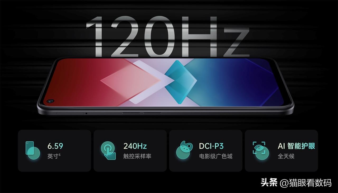 这款OPPO K10x比较有特色的地方就是使用了一块6.59英寸的LCD直屏,并支持120Hz刷新率,同时还具备240Hz的触控采样率,因此比较适合用来玩游戏。它的机身有极夜和极光两种配色可选,采用了微米级哑光同体工艺,配合摄像头模组的拼接撞色,看起来很有科技感。