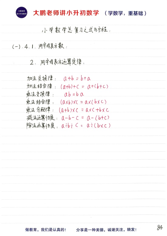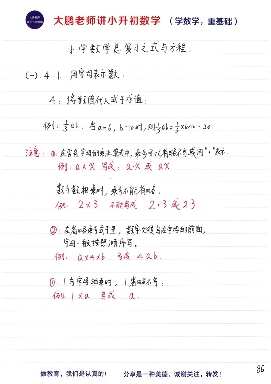 附加知识点:字母表示数的规则