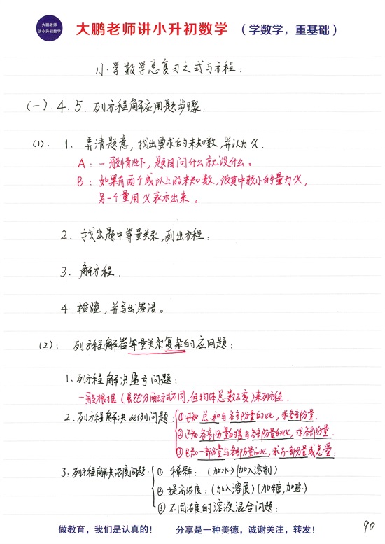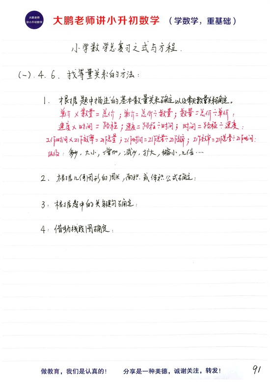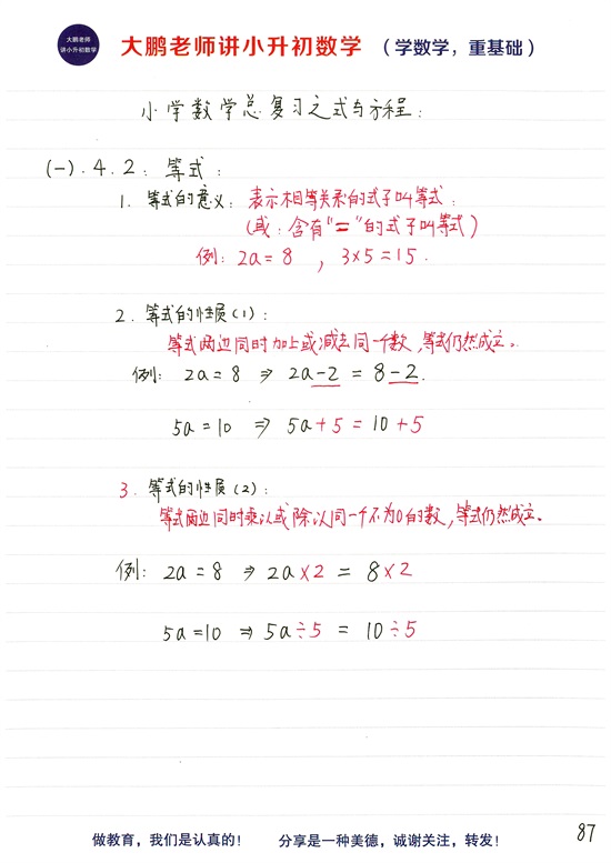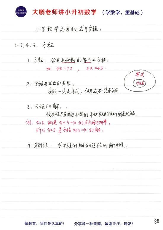 小升初总复习第十二个基础模块:小学等式和方程的区别
