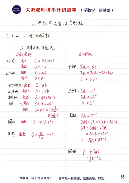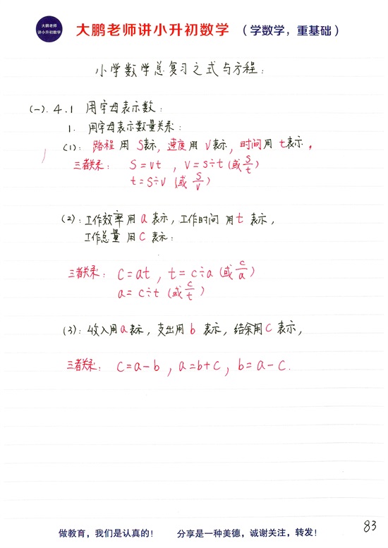3.用字母表示计算公式
