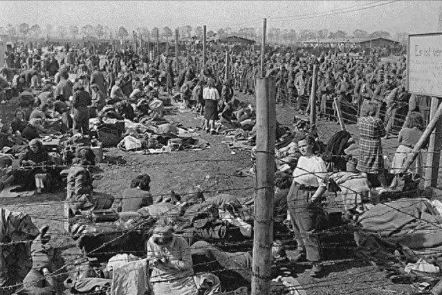 美军为了防止这些战俘们逃跑,用铁丝圈将营地围起来,虽说是靠着莱茵河,但是这些战俘们依旧吃不上饭,喝不上水,就这样,美军们硬生生的饿了他们3天。