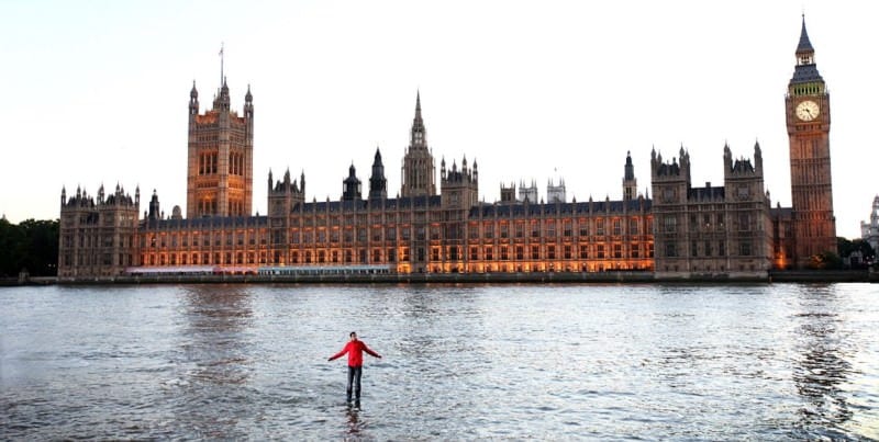 街头表演者将坐在金属板上,完全安全,不会有任何摔倒的危险,但会造成一种毫不费力就可以悬在空中的错觉。
