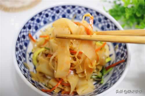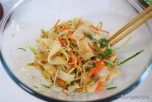 2,最后凉皮调味,可以加入少许凉开水,有助于调味料融合,也可以使凉皮更入味。