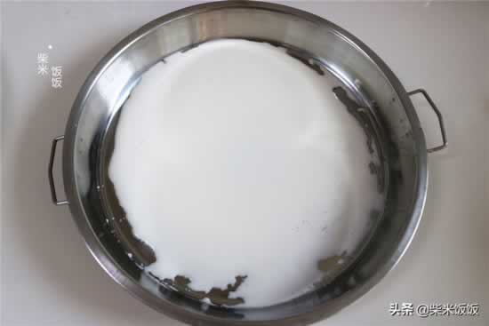 5,将凉皮盘放入凉水中冷凉1~2分钟,把凉皮揭下来即可。