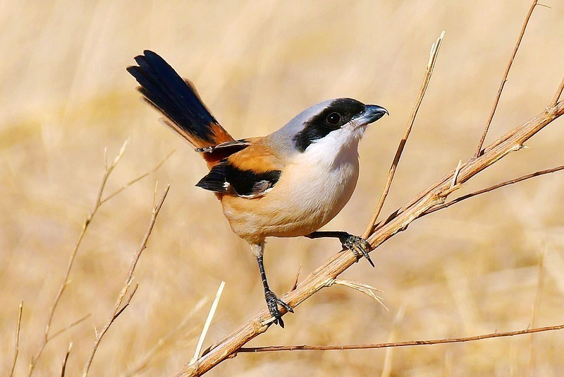 伯劳鸟分布比较广泛,在我国各地基本都有分布,在鸟类中是胆子比较大的一种小鸟,有时候还会攻击老鼠和其他鸟类。吃食主要以毛毛虫、熊蜂、蝗虫等为主。