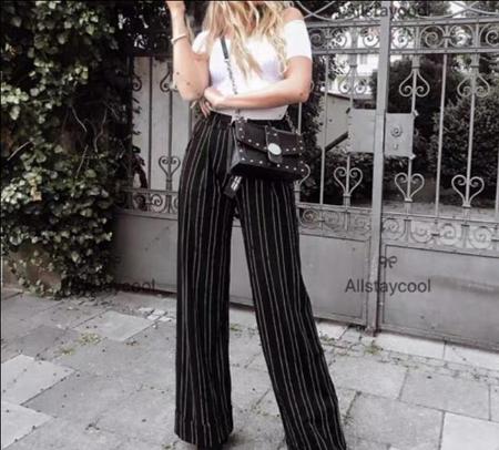 推荐二: 花苞裤 苞裤就是拉高腰线的裤子 重点它非常适合腿粗的女生 花苞裤上宽下窄 遮肉显瘦效果极佳 是腿粗女生一个不错的选择 记得 选择这种款式的裤子 裤型的挑选也是十分重要的 不适宜过于宽松 或过于紧身 一般版型挺括些 微宽松即可 这样穿上身显高显瘦的效果才更好