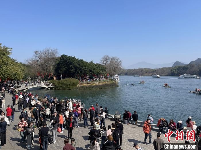 2月11日,中国传统春节大年初二,广西桂林市阳光明媚,吸引众多游客游览打卡桂林城徽象鼻山,欢度春节。