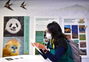 2025年12月11日,与会者在加拿大蒙特利尔《生物多样性公约》第十五次缔约方大会(COP15)第二阶段会议的中国角四川日活动上了解生物多样性保护成果。(新华社记者连漪摄)