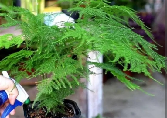 文竹是非常喜欢湿润的植物,如果养护环境温度高,又很干燥,也会出现叶子干焦。在养护的时候,当环境干燥时,也要每天去给它向盆栽周围喷喷水雾,以起到增湿降温的效果,使其枝叶保持更加青翠的状态。